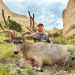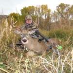We hunt unpressured and private land in both Region J and T, and apply the same Management Strategies to both units in an effort to support and cultivate both herds as much as possible. This allows for a genuine opportunity to harvest a very nice buck. We do two types of hunts; Management and Trophy. They are both 5 Day/ 6 Night fully guided hunts. The hunting is primarily spot and stalk, and always fair chase. On the "Management" hunts, a mature buck will be in the 155-165 class, while the "Trophy" hunts yield deer in the 170-180 range. Our largest deer taken on the Ranch is 220+. Transportation is usually accomplished with ATV's and 4WD vehicles. Because of the diverse habitat in both Regions, we can offer everything from a low land river bottom hunt to a high-country rugged mule deer hunt in Big Horn Sheep country. As with most elite Mule Deer hunts out west, this is an excellent optics hunt with a lot of glassing while maintaining a low impact on bedding and feeding areas.