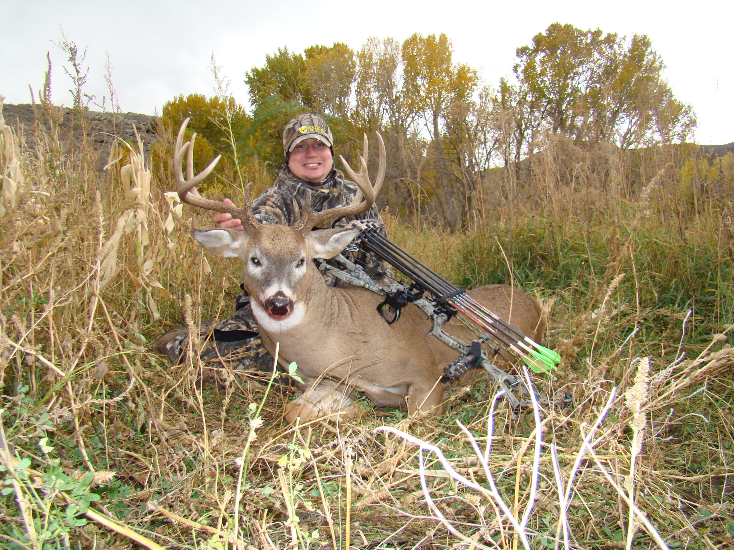 We hunt unpressured and private land in both Region J and T, and apply the same Management Strategies to both units in an effort to support and cultivate both herds as much as possible. This allows for a genuine opportunity to harvest a very nice buck. We do two types of hunts; Management and Trophy. They are both 5 Day/ 6 Night fully guided hunts. The hunting is primarily spot and stalk, and always fair chase. On the "Management" hunts, a mature buck will be in the 155-165 class, while the "Trophy" hunts yield deer in the 170-180 range. Our largest deer taken on the Ranch is 220+. Transportation is usually accomplished with ATV's and 4WD vehicles. Because of the diverse habitat in both Regions, we can offer everything from a low land river bottom hunt to a high-country rugged mule deer hunt in Big Horn Sheep country. As with most elite Mule Deer hunts out west, this is an excellent optics hunt with a lot of glassing while maintaining a low impact on bedding and feeding areas.